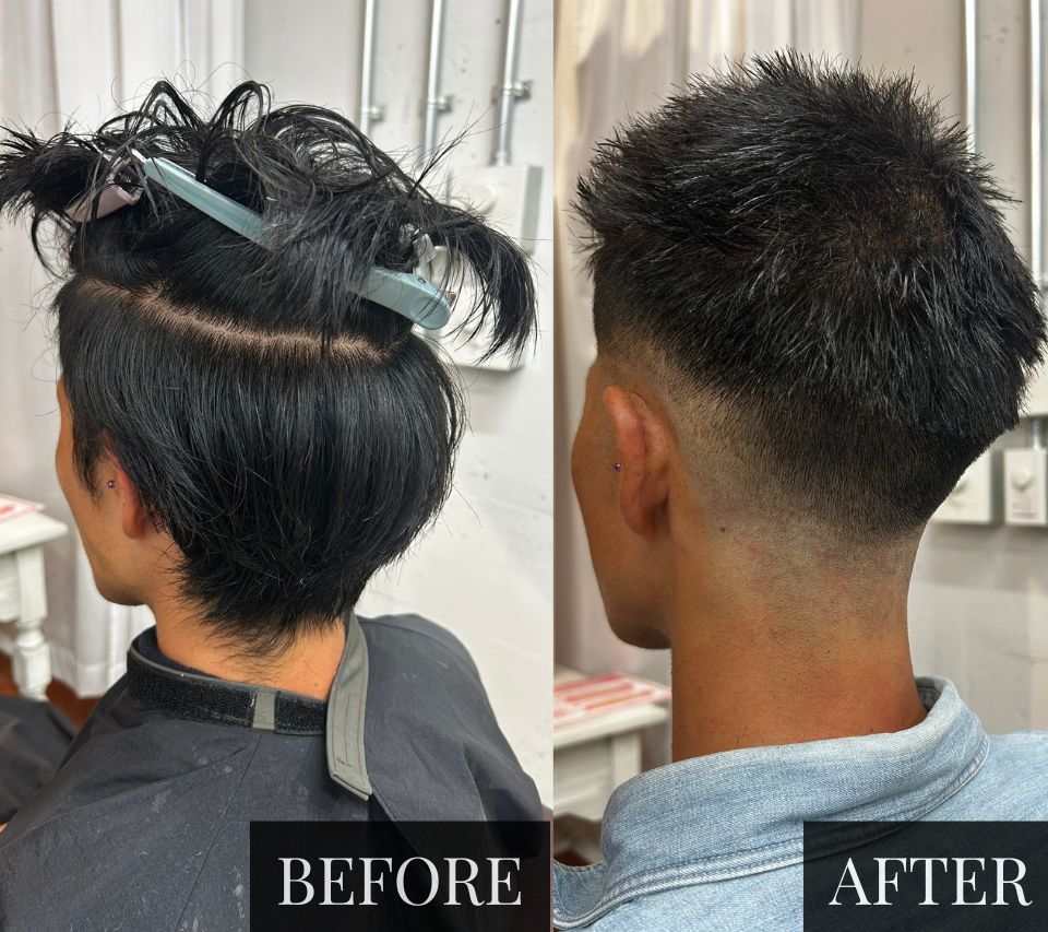 EXCIAでは9mmのバリカンで自然なグラデーション刈り上げを作っています。即日で悩みが解決し、毎朝のセット時間もゼロになります!